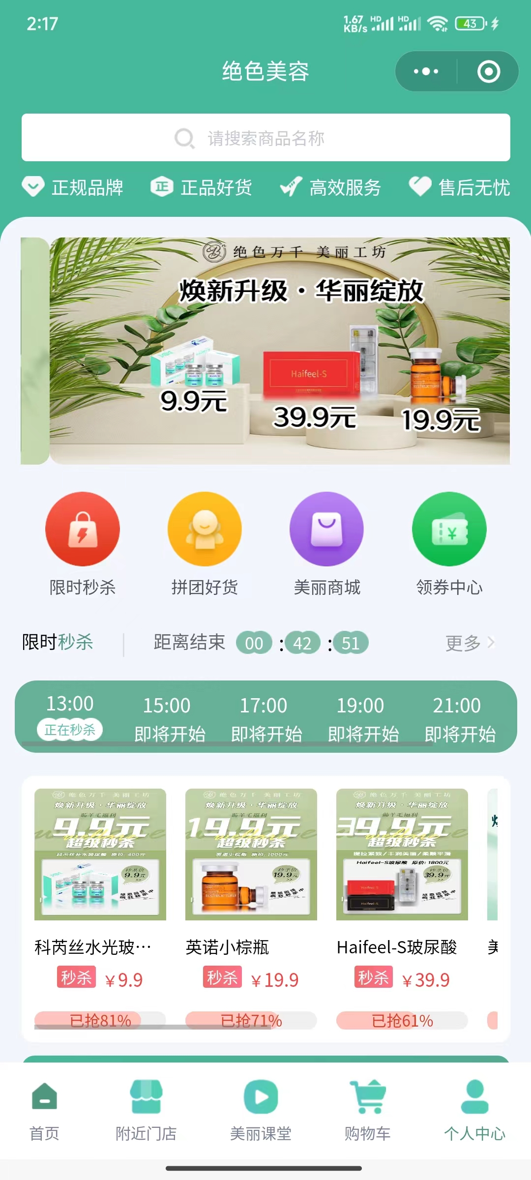 价格优势:通过展示如“9.9元”、“19.9元”等优惠价格,小程序吸引顾客以更实惠的价格体验美容服务。