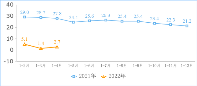 工信部今日发布 1-4 月份互联网和相关服务业运行情况,数据显示,1—4 月份,我国规模以上互联网和相关服务企业完成业务收入 4437 亿元,同比增长 2.7%,增速较一季度提高 1.3 个百分点;营业