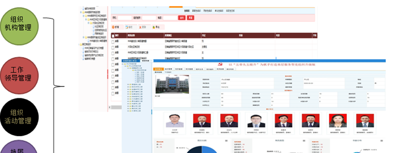 针对所有的党组织党委、党总部、党支部进行系统化管理。掌握党组织机构信息、党建机构树形机构管理、党建工作人员、党组织组织活动的有序管理。