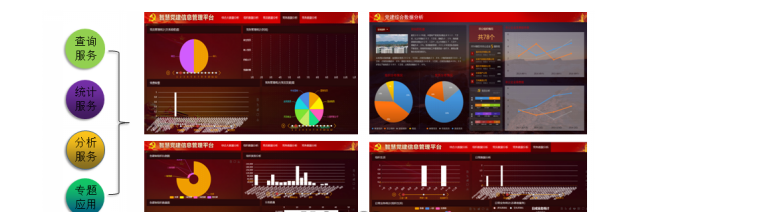 智能分析通过多维度、多渠道动态采集各种信息,并通过数据分析手段及时跟踪和了解基层党建工作情况,随时可以通过图形化方式直观展现党组织分布、党员分布、流动党员分布等,从而为党建管理和组织决策提供切实有效的数据依据,不断提升党建管理效率和科学化水平。