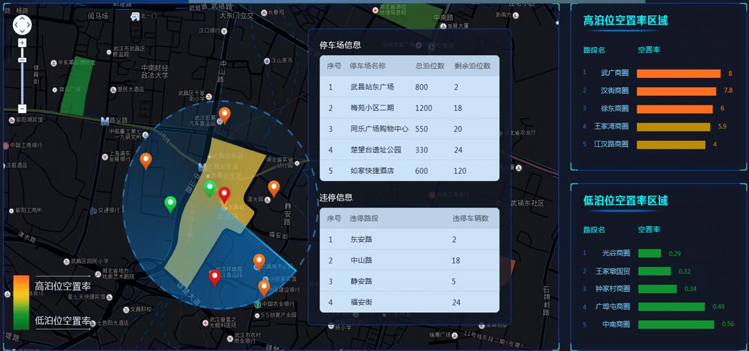 诱导系统分线上诱导和线下诱导两种,线下分三级设置,在主干道设立一级诱导屏,停车场周边交叉口设 置二级诱导屏,停车场入口市政道路附近设立三级诱导屏,构建停车诱导体系,实时显示剩余停车位信息。 线上诱导通过手机APP实现,可进行空位显示、导航、车位预定等服务。诱导为车主提供快捷停车诱导服 务,有利于提高停车场收入,减少道路上寻找车位的无用车流,缓解城市交通拥堵现象。同时可提升城市 智慧化程度和城市形象。智能地锁