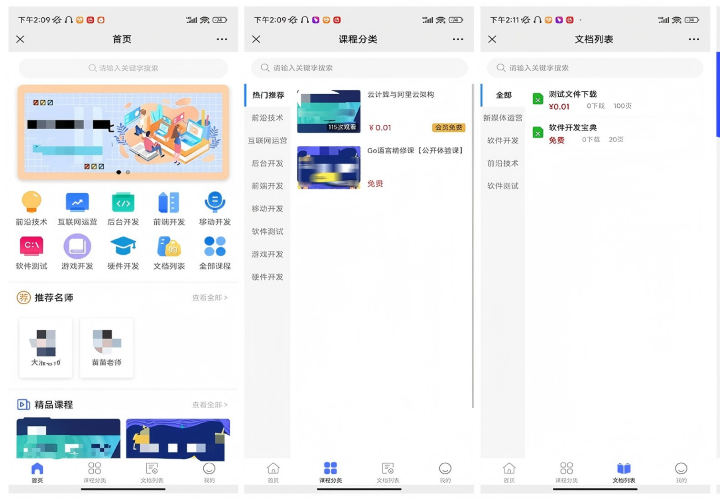 · 专栏课程功能:将多个课程打包为专栏,用户可以一次性购买相关课程,提供一站式学习体验。