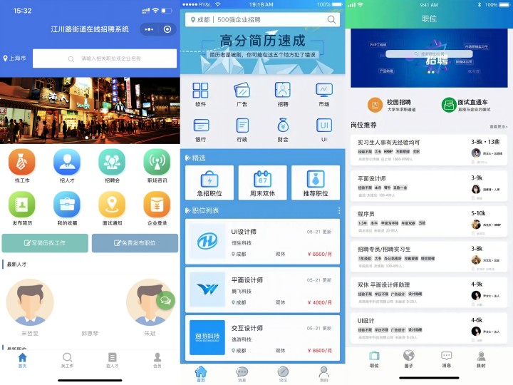 求职者根据职位名称、薪资、行业等条件快速搜索职位,系统也会根据简历推荐个性化的岗位,提高匹配效率。